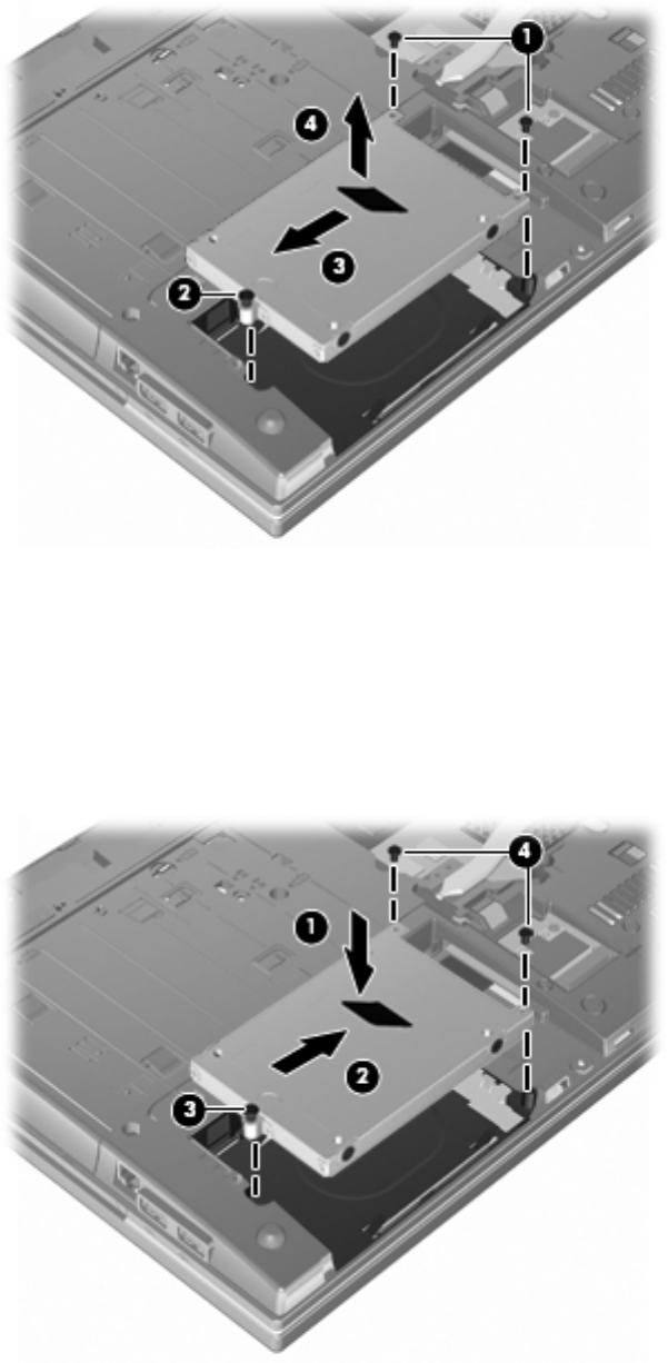 4. 2 つのネジをハードドライブの後部に取り付けて締めます。