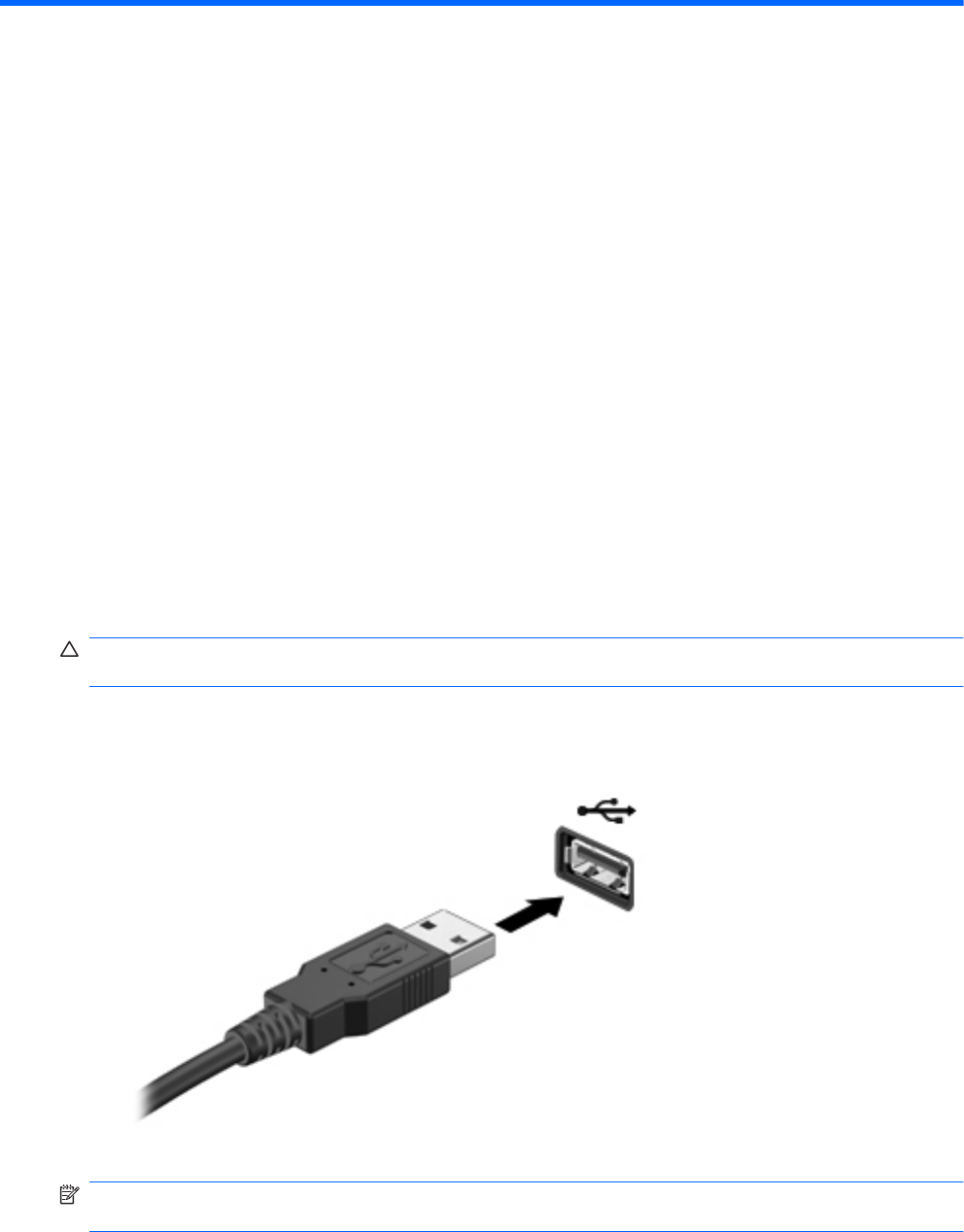 注意: USB コネクタの損傷を防ぐため、USB デバイスの接続時に必要以上の力を加えないでくだ