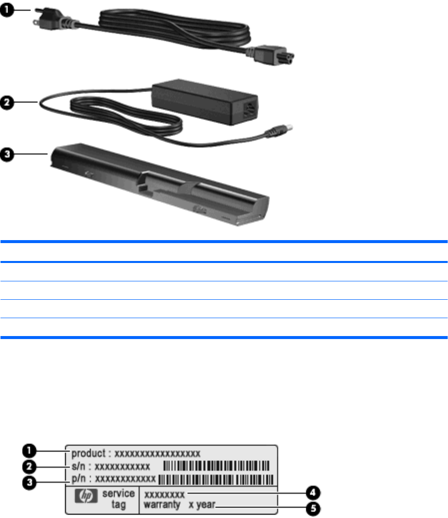 型号说明 (4)。使用此编号可以查找此款笔记本计算机适用的文档、驱动程序和支持。