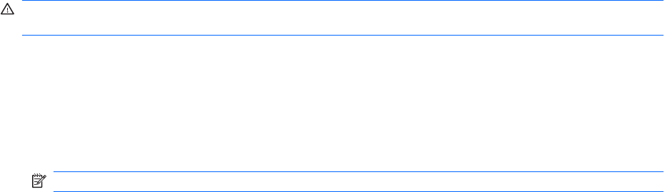 - 播放音频 CD 或 DVD 中的上一个曲目或章节 (fn+f10)(仅限某些机型)
