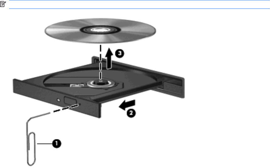注: 如果托盘没有完全伸出,请将光盘倾斜小心取出。