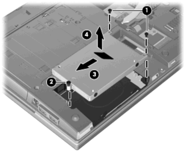 12. 将硬盘驱动器 (4) 从硬盘驱动器托架中提出。