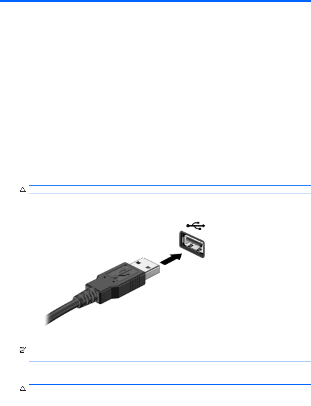 注: 第一次连接 USB 设备时,将在通知区域中显示一条消息,通知您笔记本计算机可以识别该设