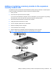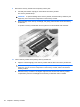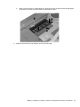 b. Grasp the edge of the memory module (2), and gently pull the module out of the memory