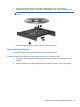 2. Prima o botão de libertação (1) no painel da unidade para libertar o tabuleiro do disco.