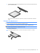 a. Леко натиснете навътре ExpressCard (1), за да я освободите.
