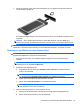 b. Fassen Sie das Speichermodul am Rand (2), und ziehen Sie es vorsichtig aus dem
