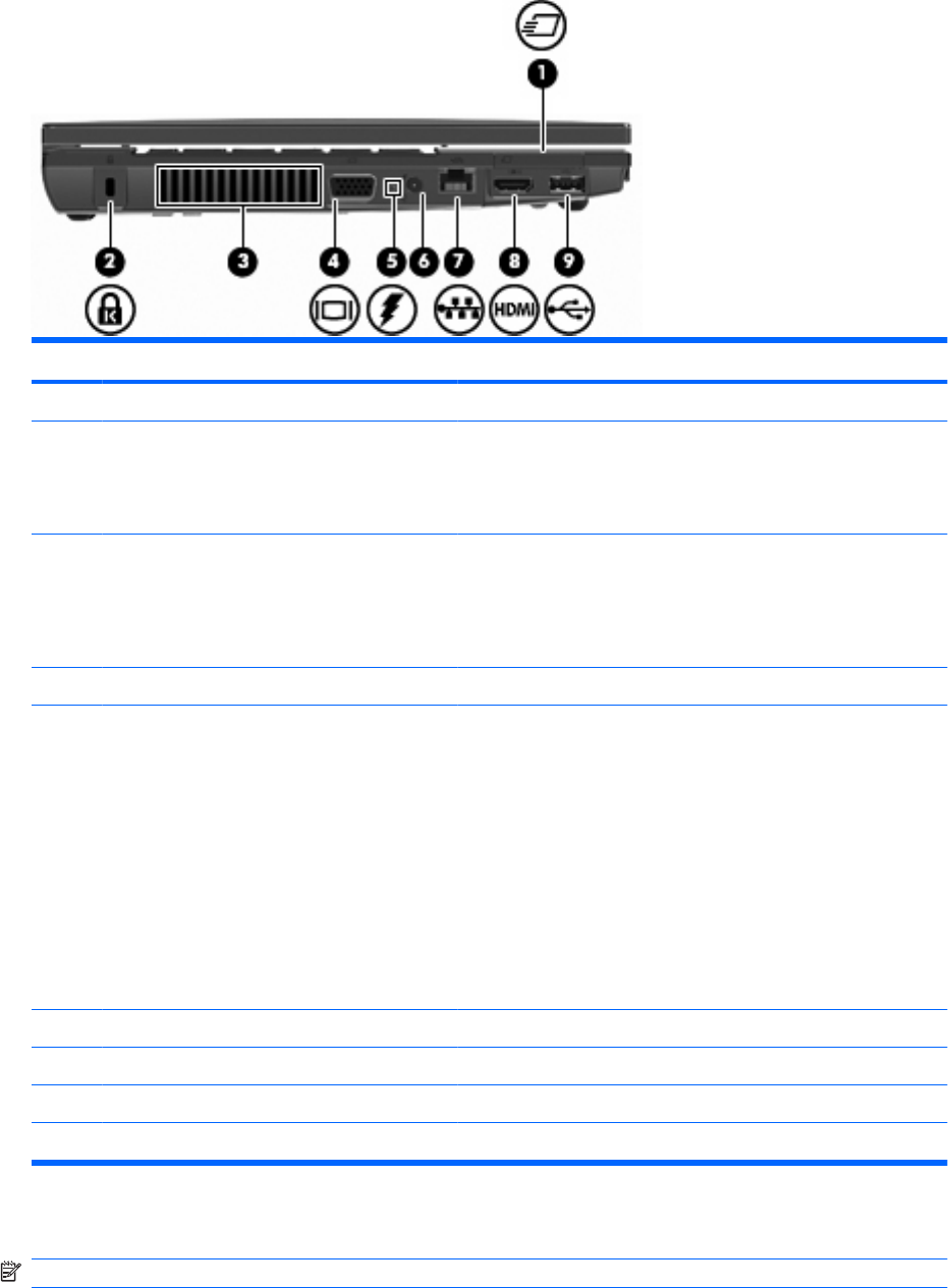 (2) Slot para cabo de segurança Conecta um cabo de segurança opcional ao computador.