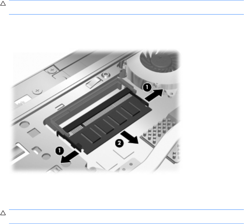 b. Segure a borda do módulo de memória (2) e puxe-o cuidadosamente para fora do slot.