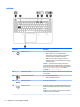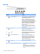 (1) Stik til sikkerhedskabel Til tilslutning af et valgfrit sikkerhedskabel til computeren.