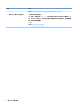图标 说明 切换选择打开的应用。 显示打开的应用中可用的命令。 显示或隐藏桌面。 打开搜索超级按钮。 打开共享超级按钮。 打开设备超级按钮。 打开设置超级按钮。 播放音频 CD 的上一个曲目或者 DVD 或 BD 的上一个章节。 开始、暂停或恢复播放音频 CD、DVD 或 BD。 播放音频 CD 的下一个曲目或者 DVD 或 BD 的下一个章节。 停止音频或视频播放音频 CD、DVD 或 BD。 打开“打印选项”窗口。 粘贴剪贴板的内容。 启动睡眠模式;将在系统内存中保存您的信息。关闭显示屏和其他系统组件以节省电能。 要退出睡眠模式,请快速按一下电源按钮。 注意:为降低丢失信息的风险,在启动睡眠模式之前,请保存所做的工作。 启用或取消扬声器静音。 在按住该键时,将逐渐降低扬声器音量。 6 第 3 章 导航该屏幕