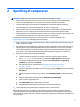 2 Opstilling af computeren ADVARSEL! Sådan reduceres risikoen for elektrisk stød eller beskadigelse af udstyr: ● Placér computeren et sted, hvor der ikke er risiko for vand, støv, fugt og sod. Disse miljømæssige faktorer kan øge temperaturen i din computer eller forårsage brand eller elektrisk stød. ● Fjern ikke netledningens jordforbindelse. Jordstikbenet er en vigtig sikkerhedsforanstaltning. ● Slut netledningen til en vekselstrømsstikkontakt, der altid er let tilgængelig.