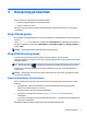 3 Navigering på skærmen Du kan navigere på computerskærmen på følgende måder: ● Brug af berøringsbevægelser (kun udvalgte modeller) ● Brug af et tastatur og en mus Udvalgte computermodeller har særlige handlingstaster eller hurtigtaster på tastaturet, som kan udføre rutineopgaver. Brug af touch-gestus Du kan tilpasse berøringsbevægelserne ved at ændre indstillinger, knapkonfigurationer, klikke-hastighed og pegevalg. Skriv kontrolpanel fra startskærmen, og vælg derefter Kontrolpanel.