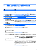 作業 説明 ● 以下の操作を行って、 『規定、安全および環境に関するご注意』を参照します 規定および安全に関する注意事項 の検索 スタート画面で「support」と入力して、[HP Support Assistant]アプリケーショ ンを選択します。または、Windows デスクトップで、タスクバーの右端の通知領 域にある疑問符のアイコンをクリックします。[マイ コンピューター]→[ユー ザー ガイド]の順に選択します または http://www.hp.com/jp/contact/ を参照してください ● 人間工学的情報の検索 以下の操作を行って、 『快適に使用していただくために』を参照します スタート画面で「support」と入力して、[HP Support Assistant]アプリケーショ ンを選択します。または、Windows デスクトップで、タスクバーの右端の通知領 域にある疑問符のアイコンをクリックします。[マイ コンピューター]→[ユー ザー ガイド]の順に選択します または http://www.hp.