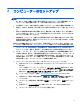 7 メンテナンス 単純なメンテナンスを実行し、コンピューターが最高のパフォーマンスで動作するようにすることが 重要です。 スケジュールおよびタスク メンテナンスを適切に行うには、推奨される間隔で以下の作業を実行してください。 毎週 ソフトウェアのクリー ンアップ [ディスク クリーンアップ]、または他社製の安全なクリーニングツール を使用して、システムの動作を低下させる原因となる、蓄積された不要 なファイルや一時ファイルを削除します。また、不要になったプログラ ムを確認して、それらをアンインストールします [ディスクのクリーンアップ]を実行するには、以下の操作を行います デフラグおよび最適化 1. スタート画面で「コントロール」と入力し、[コントロール パネル] →[システムとセキュリティ]→[ディスク領域の解放]の順に選択し ます 2.