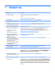1 Ақпарат алу Тапсырмалар Нұсқаулар ● Орнату нұсқаулары немесе Жылдам орнату парақшасы Компьютерді орнату – немесе – Компьютерді орнату (3-бет) бөлімін қараңыз. ● Интернетке қосу Интернетке жалғау (таңдаулы үлгілерде) (4-бет) бөлімін қараңыз. ● Зауыттық параметрлерін қалпына келтіру Жүйені қалпына келтіру (18-бет) бөлімін қараңыз. ● Компьютер функцияларын қолдану туралы бейне-нұсқауларды көріңіз http://www.hp.com/supportvideos бөлімін қараңыз (ағылшын тілінде ғана).