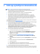 1 Skaffe informasjon Oppgaver Instruksjoner ● Plakat medInstalleringsveiledning eller Hurtigoppsett Koble opp og konfigurere din datamaskin – eller – Se Koble opp og konfigurere datamaskinen din på side 3. ● Koble til Internett Se Koble til Internett (bare på enkelte modeller) på side 4. ● Gjenopprette fabrikkinnstillinger Se Systemgjenoppretting på side 16. ● Se videoer som viser hvordan du bruker funksjonene som følger med datamaskinen din Besøk http://www.hp.