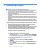 Recuperación del sistema desde medios de recuperación PRECAUCIÓN: La recuperación del sistema borra todos los datos y programas que hayan sido creados o instalados. Haga una copia de seguridad de todos los datos importantes en un disco extraíble o unidad flash USB. Para crear medios de recuperación, consulte Creación de medios de recuperación en la página 20. Para realizar una recuperación del sistema utilizando medios de recuperación: 1.
