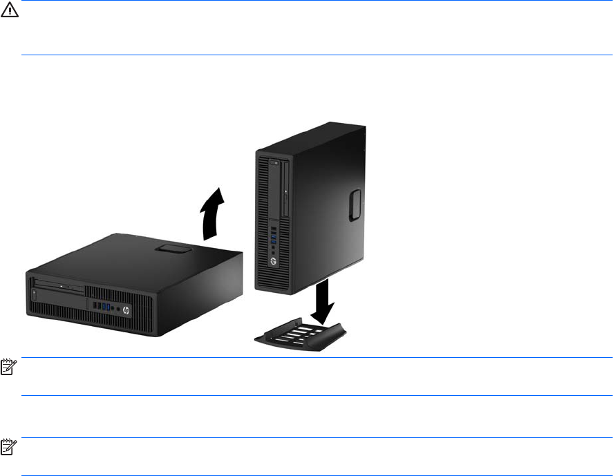 Small Form Factor kompiuterį galima naudoti jam esant vertikalioje padėtyje su pasirinktiniu stovu, kurį