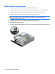 PIEZĪME. Lai datoru nostabilizētu torņa orientācijā, HP iesaka izmantot papildu torņa statīvu.
