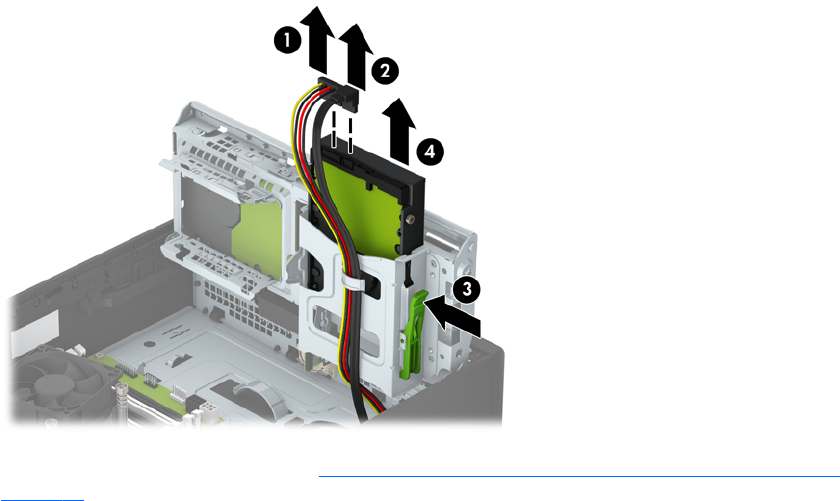 на защелку, находящуюся сбоку на корпусе (3), и извлеките жесткий диск из отсека (4).