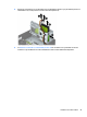 11. Anslut strömkabeln (1) och datakabeln (2) till hårddiskens baksida.
