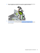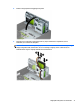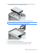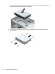 8. Húzza ki a tápkábelt (1) és az adatkábelt (2) a merevlemez-meghajtó hátoldalából. Nyomja meg a