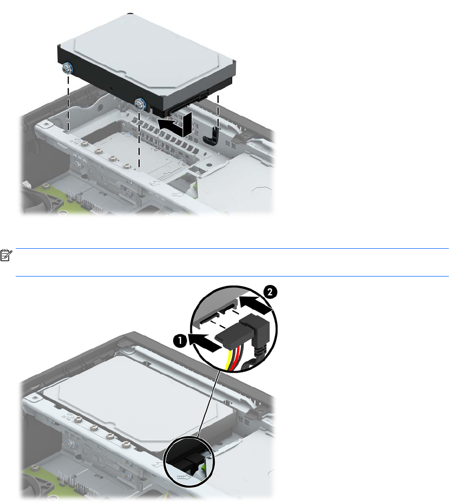 11. Na stražnjoj strani tvrdog diska spojite naponski kabel (1) i podatkovni kabel (2).