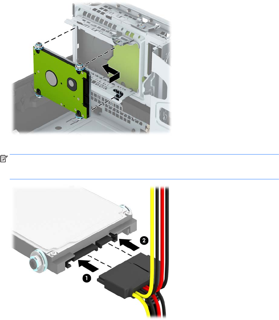 10. Na stražnjoj strani tvrdog diska spojite naponski kabel (1) i podatkovni kabel (2).