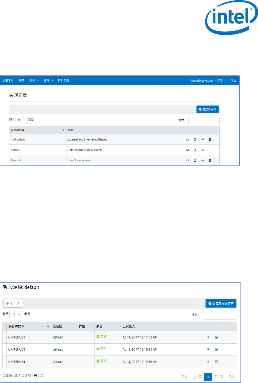 此頁面可讓您建立、檢視、刪除及編輯設定檔。本頁的版面配置和功能與裝置群組類似,但包含設定檔。設定