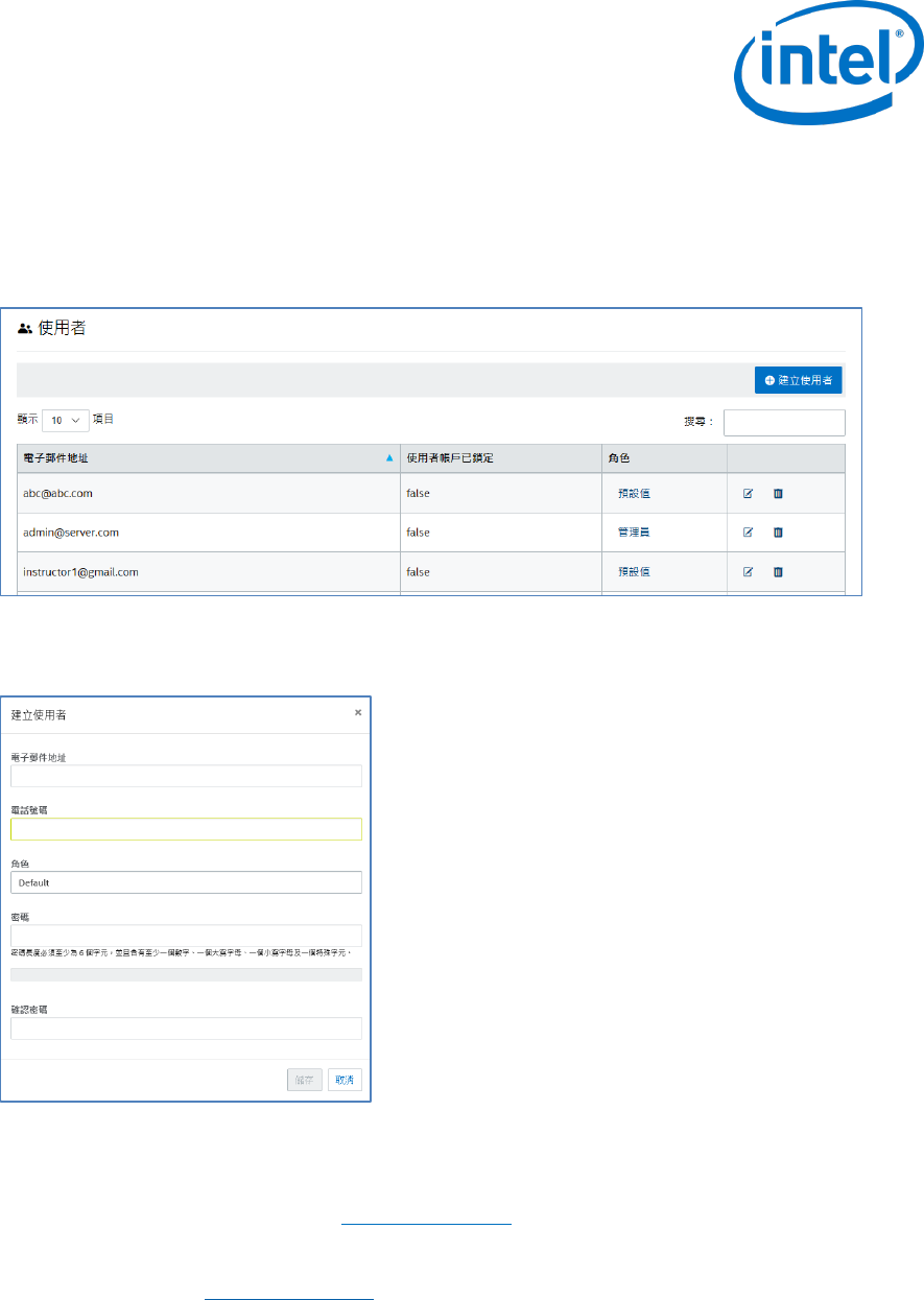 使用者頁面會顯示管理入口網站上註冊的所有使用者清單、其帳戶是否已遭登出及其角色。您也可以按一下編