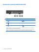 Komponente na sprednji plošči (EliteDesk 705) OPOMBA: Model računalnika se lahko nekoliko razlikuje od tistega na sliki v tem razdelku. 1 Priključek za slušalke 4 Vrata USB 3.0 2 Priključek za mikrofon 5 Indikator LED za aktivnost HDD 3 Vrata USB 3.0 z napajanjem 6 Gumb za napajanje z dvema stanjema OPOMBA: Vrata USB 3.0 z napajanjem lahko tudi polnijo napravo, kot je pametni telefon. Napajanje za polnjenje je na voljo, ko je napajalni kabel priključen v računalnik, tudi ko sistem ni vključen.