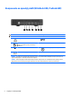 Komponente na zadnji plošči (ProDesk 400) OPOMBA: Model računalnika se lahko nekoliko razlikuje od tistega na sliki v tem razdelku. 6 1 Priključek zunanje antene 8 Priključek za monitor VGA 2 Krilati vijak 9 Serijska vrata 3 Zanka ključavnice 10 Vrata USB 3.0 (2) (modra) 4 Reža za kabelsko ključavnico 11 Priključki USB 2.