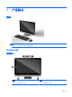 内部组件 组件 组件 1 光驱 4 内存 2 硬盘驱动器 5 RTC 电池 3 机盖传感器 ProOne 400 前部组件 组件 1 10 组件 双麦克风阵列(可选) 第 1 章 产品特点 4 网络摄像头(可选)