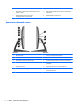 Компонент Компонент 2 Индикатор активности веб-камеры (требуется вебкамера – опция) 5 Широкоэкранный ЖК-дисплей 16:9 со светодиодной подсветкой 3 Движковый переключатель затвора конфиденциальности веб-камеры 6 Динамики High-performance 2.0 Компоненты боковой панели Компонент Компонент 1 Кнопка питания 6 Гнездо для микрофона/аудиовход 2 Светодиодный индикатор активности жесткого диска 7 Устройство чтения карт памяти HP SD (опция) 3 Порт USB 3.