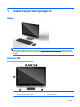 Внутренние компоненты Компонент Компонент 1 Оптический дисковод 4 Датчик наличия защитной панели 2 Дополнительный жесткий диск 5 Память 3 Основной жесткий диск 6 Батарея RTC ProOne 600 Компоненты передней панели Компонент Компонент 1 4 Набор из двух микрофонов (опция) Веб-камера (опция) ProOne 600 7