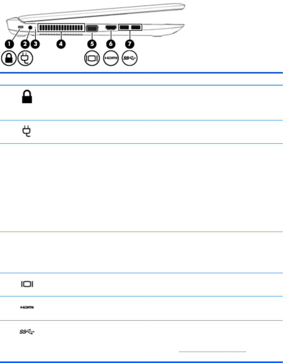 (1) Stik til sikkerhedskabel Til tilslutning af et valgfrit sikkerhedskabel til computeren.