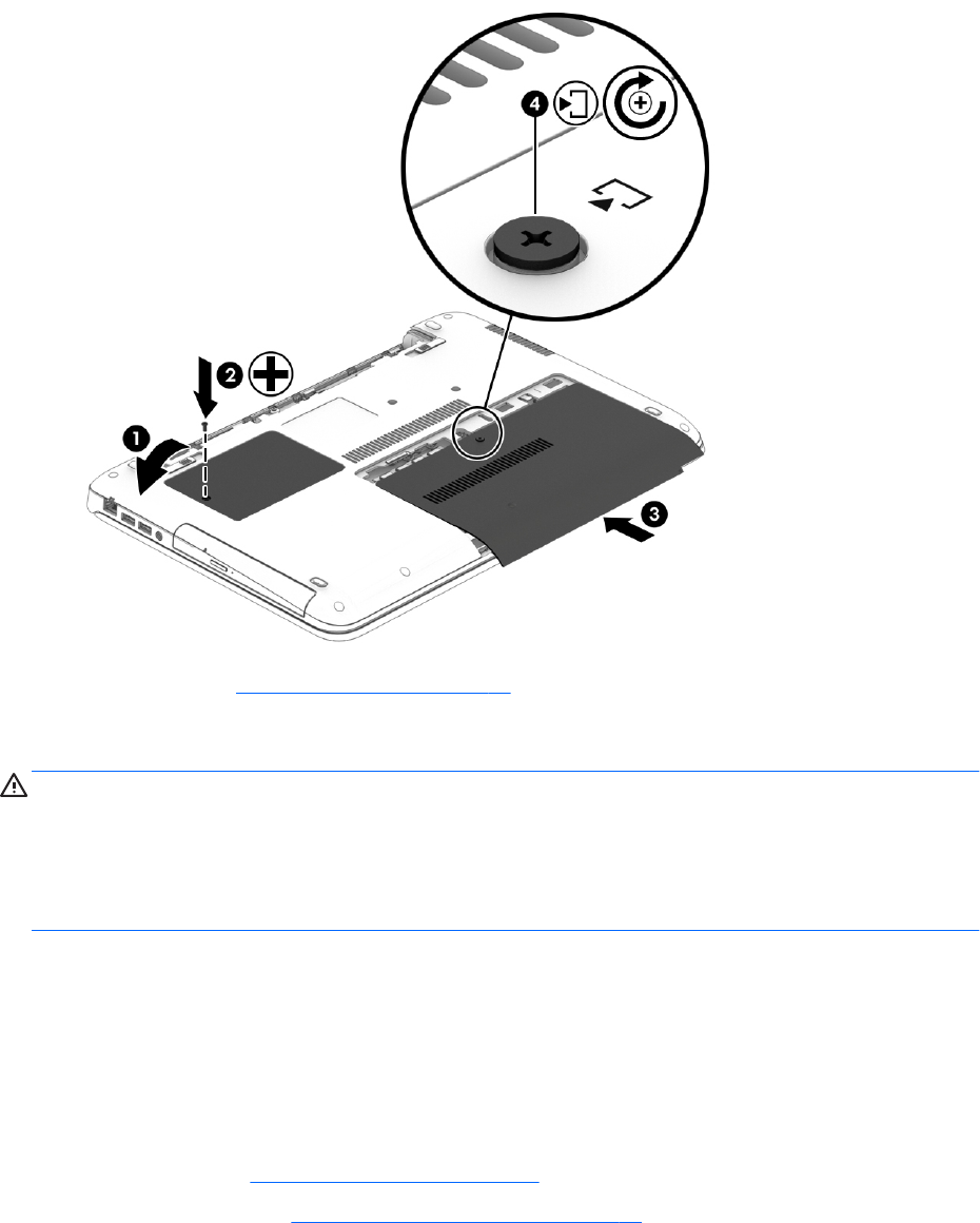 4. Spænd skruen til det større servicedæksel (4) for at fastgøre servicedækslet.