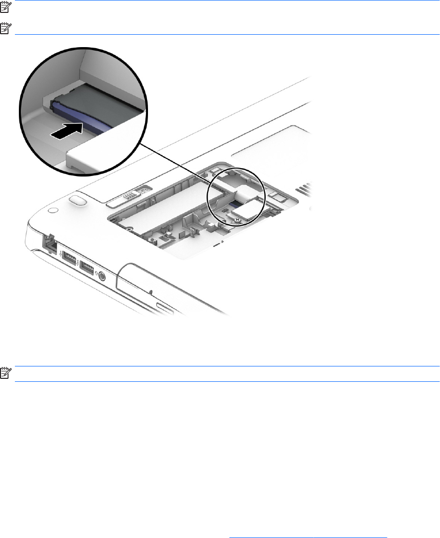 PIEZĪME. Lai noteiktu SIM kartes ievietošanas virzienu datorā, skatiet attēlu apkopes nodalījumā.