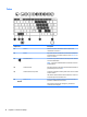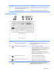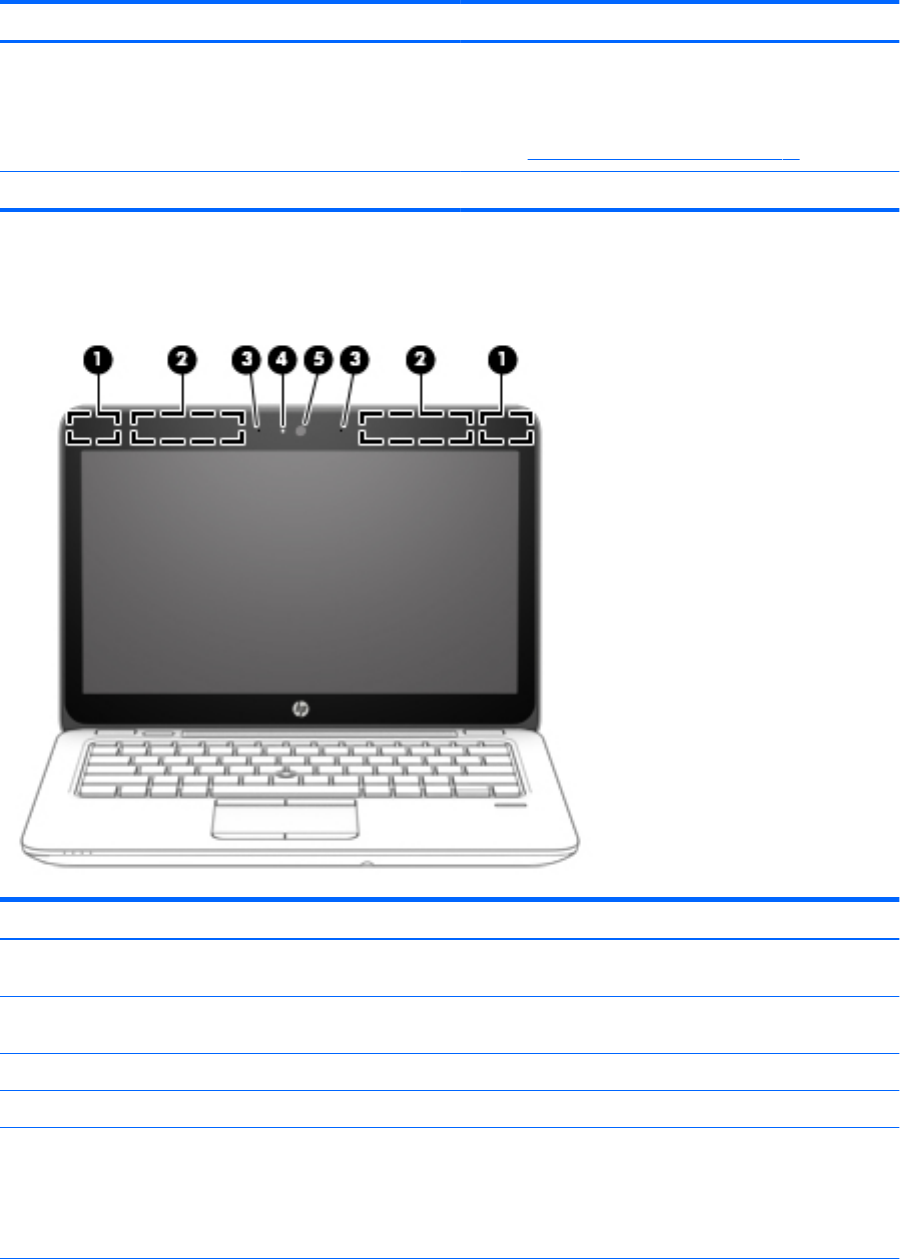 (4) Indicador luminoso de la cámara web Encendido: La cámara web está en uso.