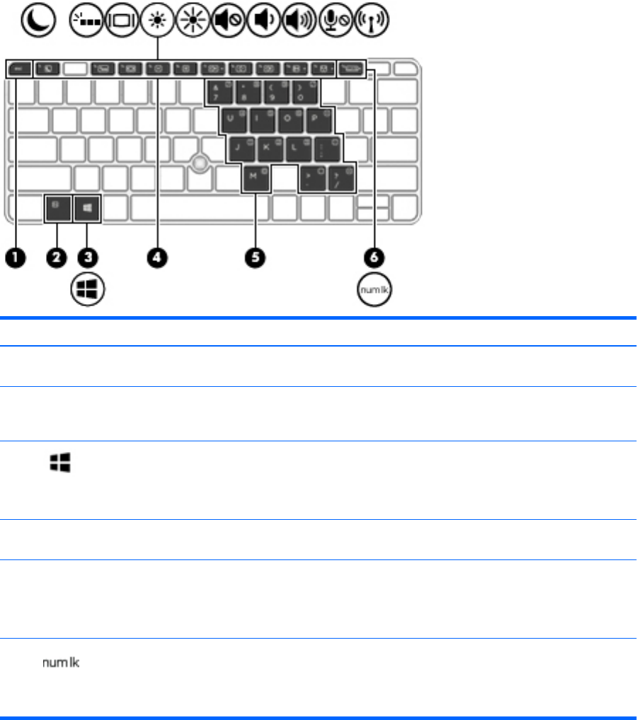 (6) Tecla bloq num Activa y desactiva el teclado numérico incorporado cuando se