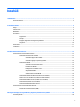 smartkort definition 44 sätta i 44 ta bort 44 smartkortplats 5 snabbtangenter använda 26 beskrivning 26 höja högtalarljudet 27 justera volymen 27 minska bildskärmens ljusstyrka 27 strömsparläge 26 stänga av högtalarljudet 27 sänka högtalarljudet 27 tangentbordets bakgrundsbelysning 26 trådlöst 27 växla bildskärm 27 öka bildskärmens ljusstyrka 27 snabbtangenter, medier 30 SoftPaqs, hämta 63 ström alternativ 36 batteri 38 spara 40 strömbrytare 36 strömknapp 36 strömknapp, identifiera 9 strömlampor 8, 11 ström