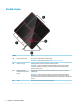 Súčasť (3) Popis Indikátor bezdrôtového rozhrania ● Nesvieti: počítač je vypnutý alebo v režime dlhodobého spánku. Dlhodobý spánok je režimom úspory energie, počas ktorého sa využíva najmenšie množstvo energie. ● Svieti: je zapnuté integrované bezdrôtové zariadenie, napríklad zariadenie bezdrôtovej lokálnej siete (WLAN) alebo zariadenie Bluetooth®. ● Nesvieti: všetky integrované bezdrôtové zariadenia sú vypnuté.