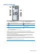 Előlapi részegységek A meghajtó-konfiguráció a típustól függően változhat. Egyes modelleken egy vagy több meghajtórekeszt takarólemez fed. 1 Merevlemez-meghajtó működését jelző LED 6 Kétállású bekapcsológomb 2 5,25 hüvelykes félmagas meghajtórekesz (a lap mögött) 7 Vékony optikai meghajtó (opcionális) 3 SD-kártyaolvasó (opcionális) 8 USB 2.0-töltőport (külön tápellátással rendelkezik, fekete) 4 USB 2.0 port (fekete) 9 USB 3.