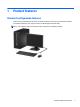 1 Product features Standard configuration features Features may vary depending on the model. For support assistance and to learn more about the hardware and software installed on your computer model, run the HP Support Assistant utility. NOTE: This computer model can be used in a tower orientation or a desktop orientation.