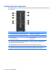 Komponenter på frontpanelen Enhetskonfiguration kan variera beroende på modell. Vissa modeller har ett panelskydd som täcker ett eller flera enhetsfack. 1 Aktivitetslampa för hårddisk 6 Strömbrytare med två lägen 2 5,25-tums enhetsfack, halva höjden (bakom täckram) 7 Optisk enhet, Slim-modell (tillval) 3 SD-kortläsare (tillval) 8 USB 2.0-laddningsport (strömdriven) (svart) 4 USB 2.0-port (svart) 9 USB 3.