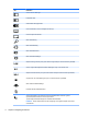 Ikon Beskrivelse Viser en liste over åbne apps. Fastgør åbne apps. Skifter mellem åbne programmer. Viser de kommandoer, som er til rådighed i en åben app. Viser eller skjuler skrivebordet. Åbner amuletten Søg. Åbner amuletten Deling. Åbner amuletten Enheder. Åbner amuletten Indstillinger. Afspiller det forrige nummer på en lyd-cd eller det forrige afsnit på en dvd eller en Blu-ray-disk (BD). Starter, stopper midlertidigt eller fortsætter afspilning af en lyd-cd, en dvd eller en bd.