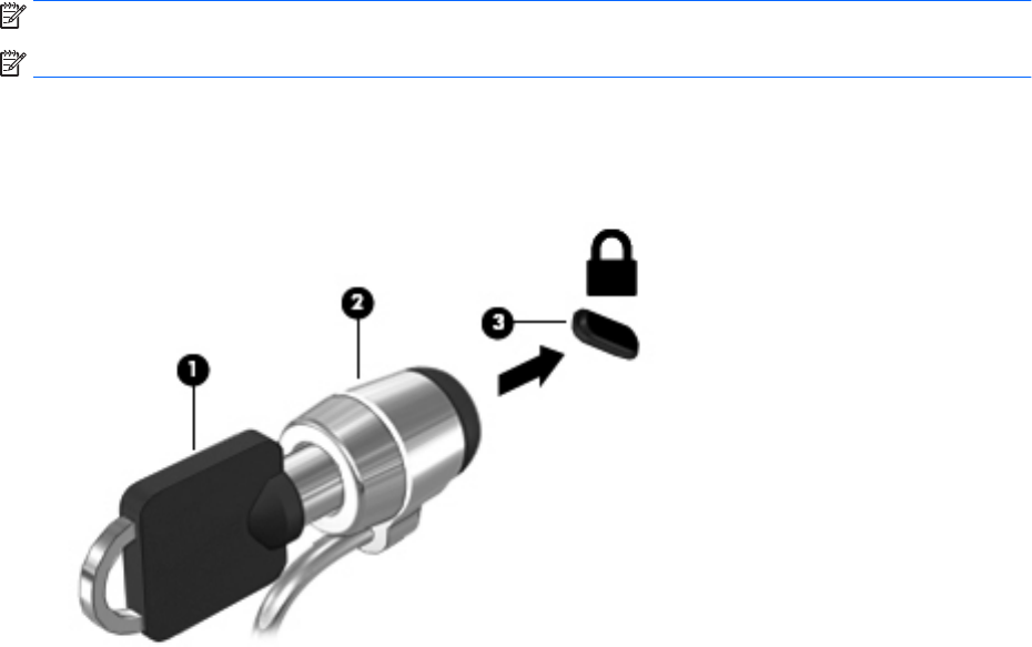 3. Sisestage turvakaabli lukk arvuti turvakaabli pessa (3) ja lukustage kaabli lukk võtme abil.
