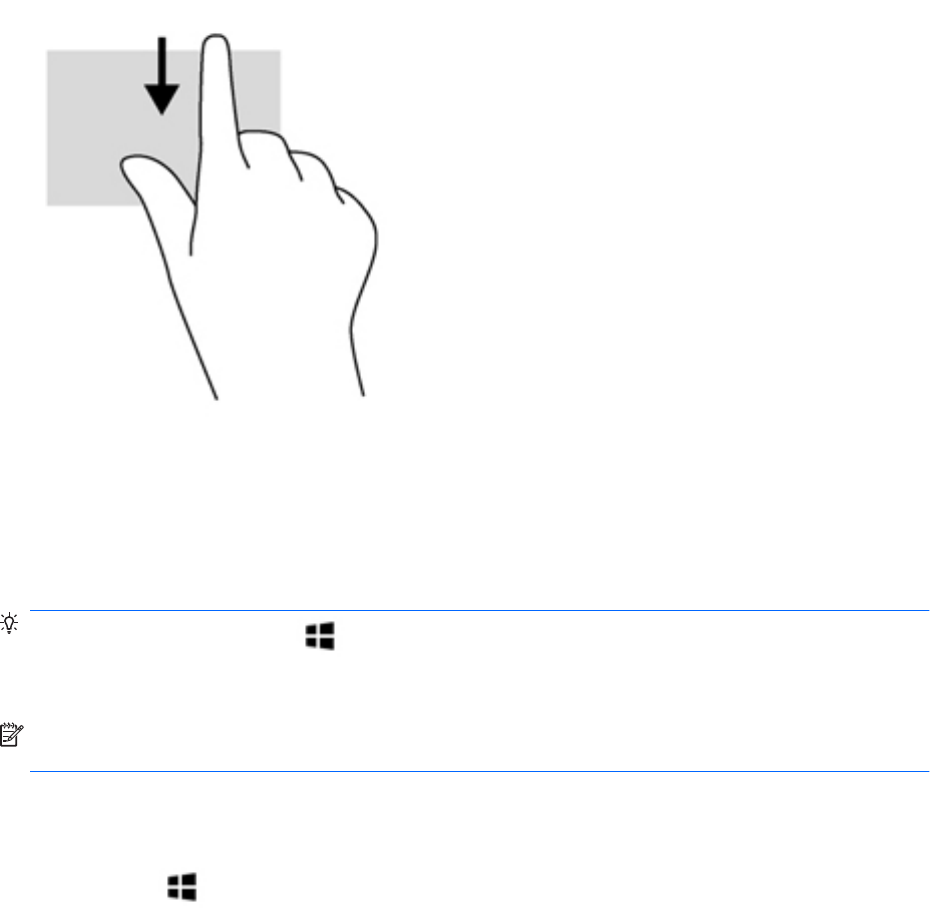 Streichen Sie mit Ihrem Finger leicht von der oberen Kante aus zur Mitte, um die Befehlsoptionen für