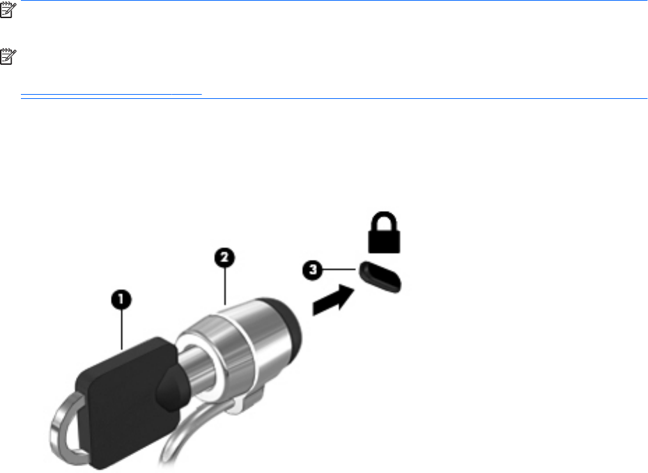 3. Кабель құлпын компьютердегі қауіпсіздік кабеліне салып (3), кілтпен кабель құлпын